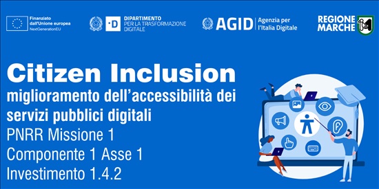 La Regione Marche, in collaborazione con l'Agenzia per l'Italia Digitale (AgID), ha attivato il progetto "Citizen Inclusion - Miglioramento dell'accessibilità dei servizi pubblici digitali”, finanziato nell'ambito del PNRR - M1C1 1.4.2. L'iniziativa, realizzata in collaborazione con l'Agenzia per l'Italia Digitale (AgID), soggetto attuatore del PNRR per questa misura, ha l'obiettivo di migliorare l'accessibilità e l'usabilità dei servizi pubblici digitali per tutti i cittadini, inclusi coloro che hanno disabilità visive, motorie, uditive e cognitive.